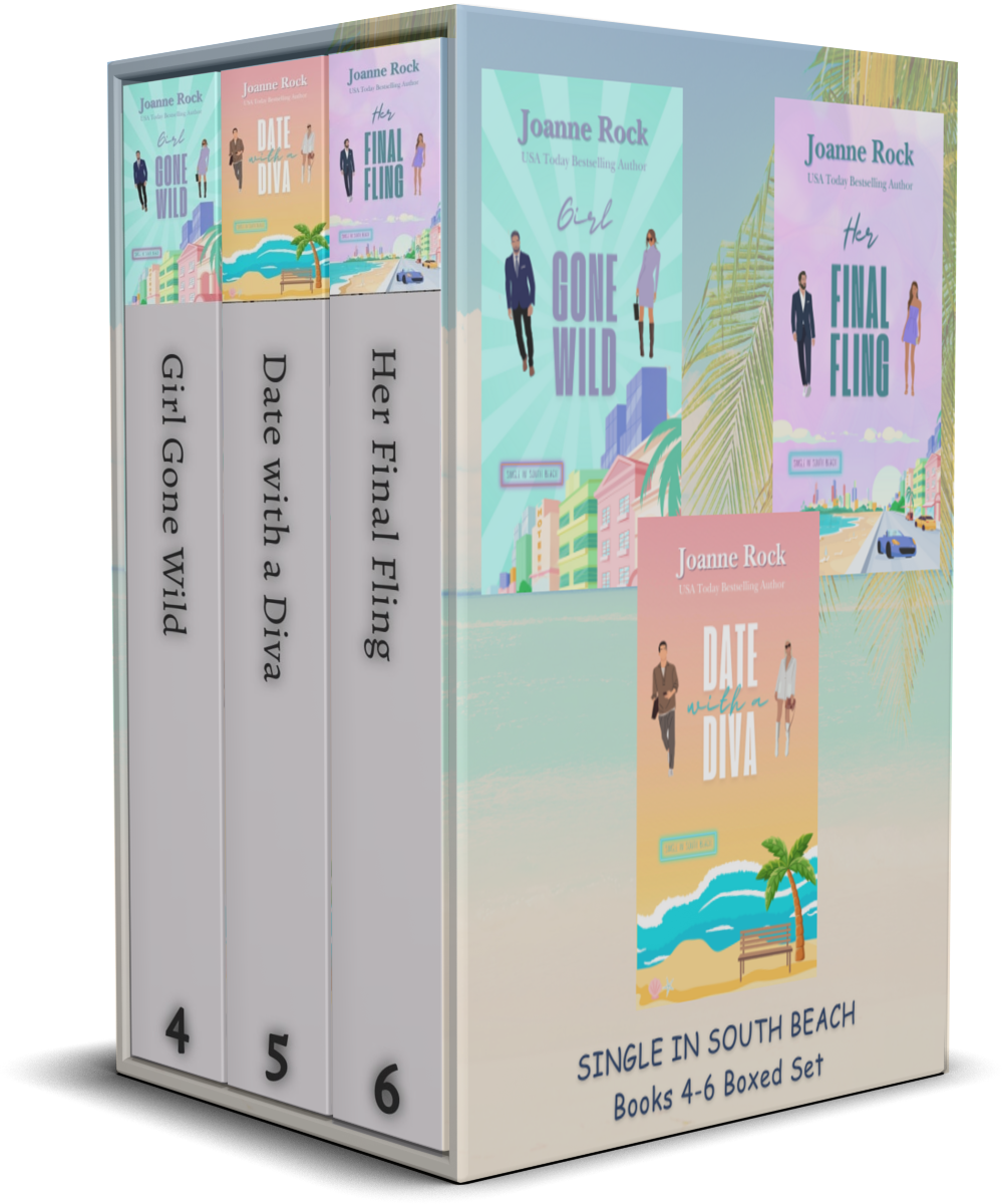 Nightlife in South Beach heats up when a group of friends turns a resort property into a sexy singles destination. Don’t miss Joanne Rock’s Single in South Beach series. This boxed set includes books 4-6 of a six book series:
